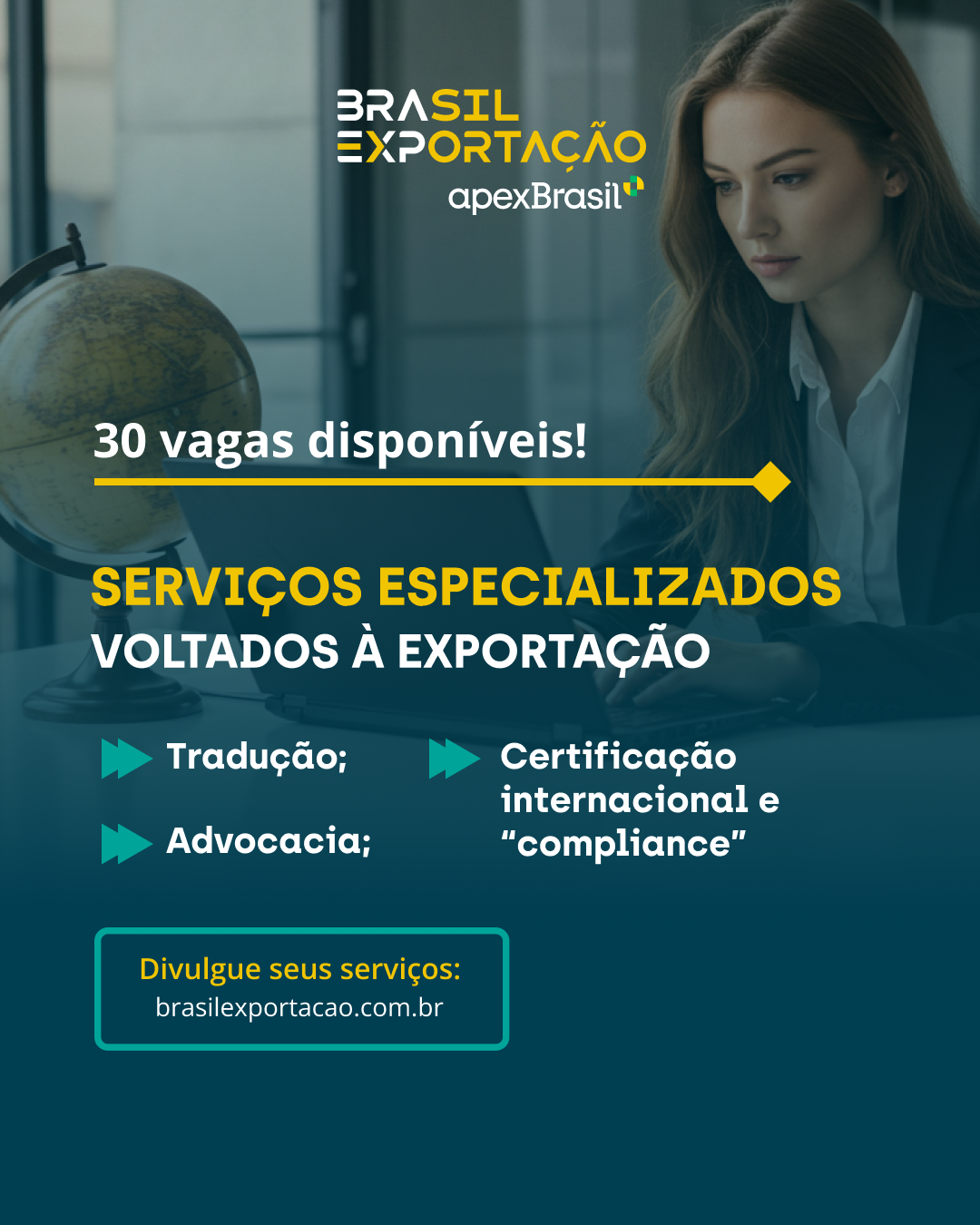 A ApexBrasil acaba de abrir um novo edital para prestadores de serviços de advocacia, tradução e outros complementares ao comércio exterior na Plataforma Brasil Exportação.