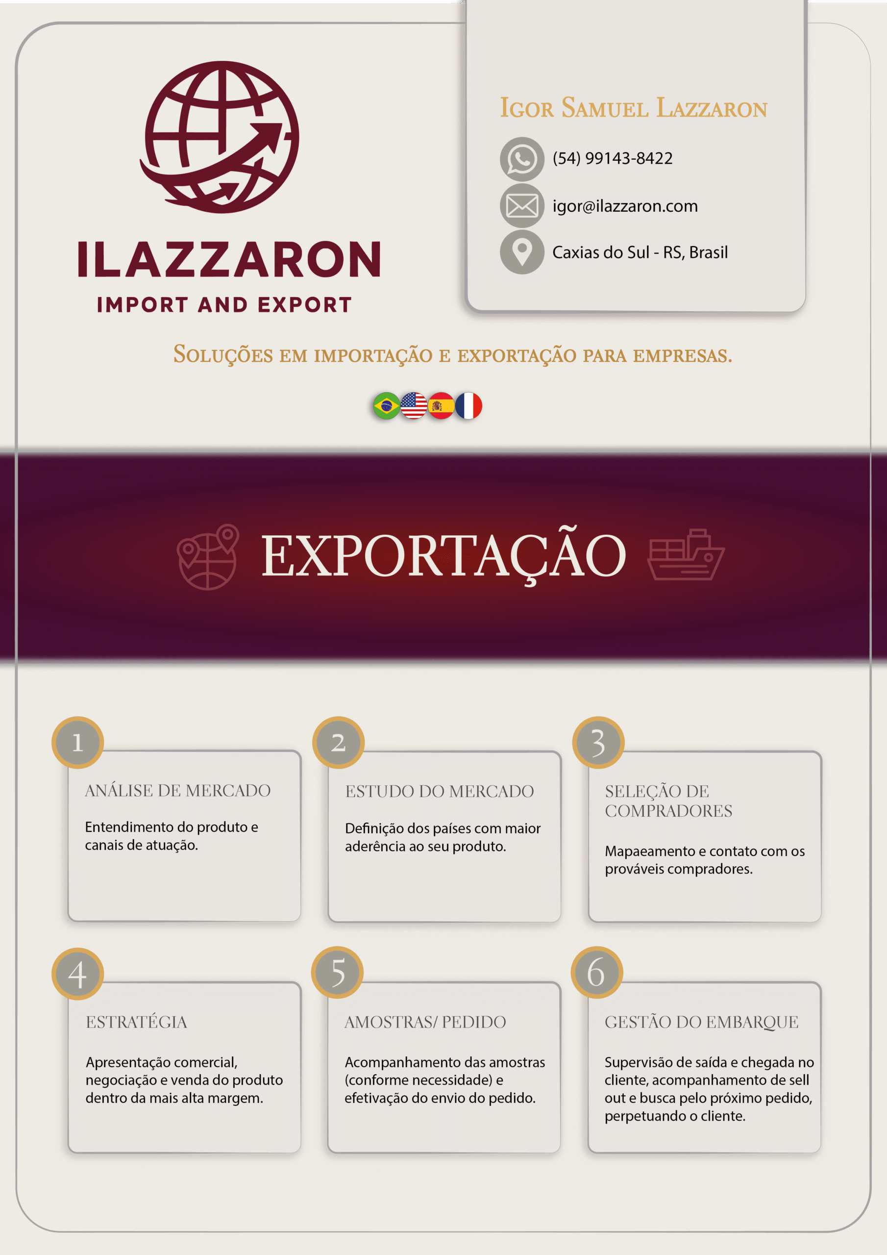 Te ajudo a começar ou expandir suas vendas no mercado internacional, analisando mercado alvo, mapeando leads, comunicando e vendendo para seus novos clientes. Nos encarregamos de venda, frete, despacho, do inicio ao fim do processo.